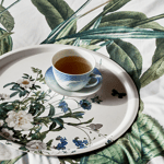 This 15-inch round serving tray from Danish brand Koustrup & Co. has enchanting bellflowers, charming white roses and beautiful butterflies. It's part of the "Blue Flower Garden" collection, created in collaboration with the Danish designer Jim Lyngvild. The tray is made of compressed Nordic FSC certified birch veneer with environmentally friendly coating on the front and back. When not in use, it can be displayed to add a decorative element to any room.