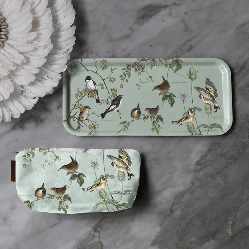 This serving tray from Danish brand Koustrup & Co. has a motif of garden birds and is sustainably made with Nordic birch veneer and a melamine coating.